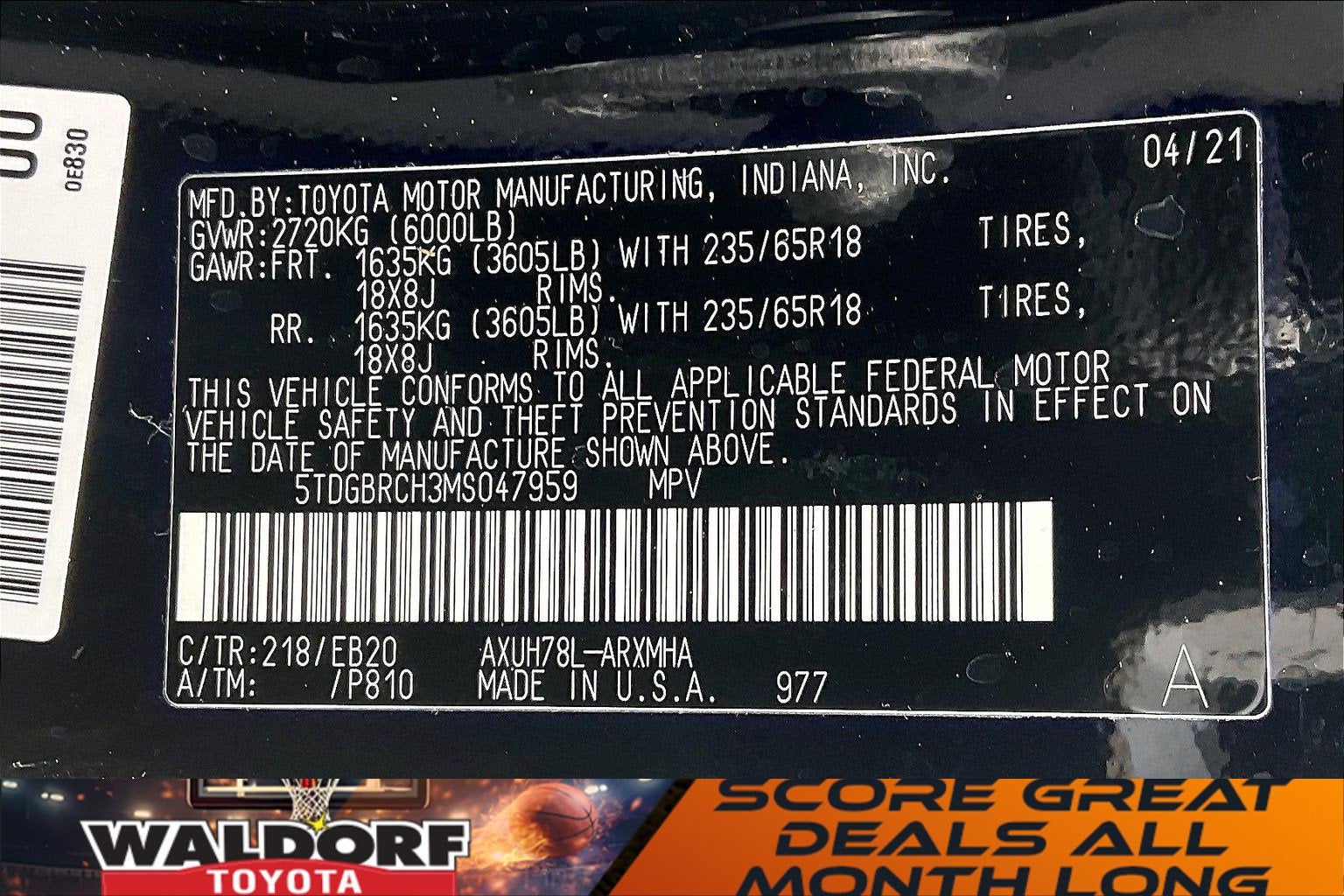 - Front Tire Size: P235/65VR18
