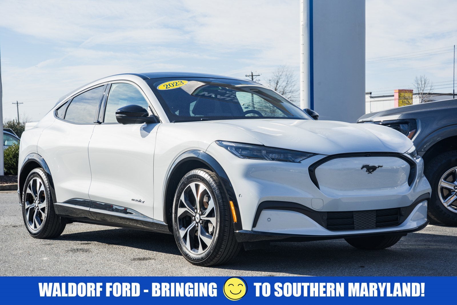 Open your door to the world of adventures with the sleek White Metallic 2023 Ford Mustang Mach-E. The Automatic Electric Motor is built for the long haul, and packed with features such as , . If you think the pictures look pretty just wait until you see it in your driveway! This Mustang Mach-E is big enough to fit everything you need for your day, plus whatever else life throws at you.